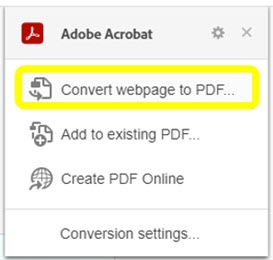 - Right-click on the web page, choose Adobe Acrobat: PDF edit, convert, Convert Web Page to Adobe PDF.