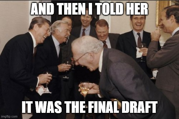 made some additional changes to the draft throughout; see the attached draft.” No, no. I protested internally. That is not the Draft. I have the Draft. That is the Ghost of Drafts Past with (groan) new revisions!